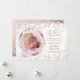 "Hola, algunos conejitos llegaron justo a tiempo para la Pascua". Foto: Tarjetas de anuncio de nacimiento del bebé con las plumas florales de color malva y rosa suave y la linda pintura de conejito.
