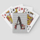 La magnífica cubierta de cartas con temática de Wonderland cuenta con ilustraciones de colores de la Alicia Vieja y la Reina del Corazón con letra grande / 'A' inicial con una suite de cartas llena sobre fondo de arlequín gris mudo.