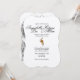 Presentando Maravilla. Añada un toque de elegancia y brillo a su día especial con este diseño de invitación de Alicia en el País de las Maravillas en blanco y negro personalizado. Esta invitación incluye un ilustracion vintage del conejo blanco revisando su reloj en el centro de un hermoso guión, y en la parte trasera, encontrarás un ilustracion de Alicia extendiéndose para hablar con el apilador. Espero que le resulte perfecto para la novia que quiera añadir un toque caprichoso sin sacrificar la elegancia clásica y moderna. Haga de su día de boda un día para recordar con este diseño único y atrevido de invitación.