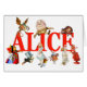 Alicia en el país de las maravillas y amigos incluyendo a la Reina de los Corazones, el Odio a los Locos, El Jabberwocky, El Dumpty Humpty, el Gato Cheshire, la Reina Roja y la Reina Blanca.