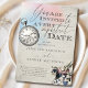 Te invitan a una cita muy importante. Esta adorable invitación a la boda vintage de Alice in Wonderland incluye conejo blanco y un reloj. Personalizar esta invitación para que se adapte a tu propia invitación. Póngase en contacto con el diseñador si necesita ayuda con la personalización o personalización.