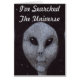 Dibujo a lápiz de color de tres ETs de color gris alienígena contra un cielo negro estrellado.