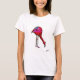 Esta camiseta se ve reforzada por el uso de un dibujo abstracto titulado: Alimentando el flamenco en resumen por el artista Kirt Tisdale. El arte colorido añade un elemento realzador al producto.