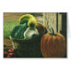 Frutos de ilustracion y verduras de la cosecha de otoño de la granja con una variedad de calabazas de invierno en una canasta, una calabaza y varias manzanas rojas.