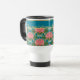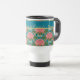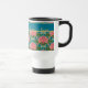 Una moda, no spill Travel Mug para personalizar, con un patrón de Waterlilies rosas y Dragonflies azules; de la colección Posh & Painterly 'Lily Pond'.