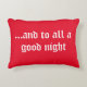 almohada de tiro rojo con bayas de bonito con "...y para todos una buena noche" en ella en un guión hermoso y nevado blanco. Tenemos este diseño en verde Christmasy con letras blancas de nieve también. Las palabras pueden cambiarse por las suyas si lo prefieres. Esta está acondicionada en algodón lavable, pero hay otras opciones de tela a precios diferentes.