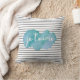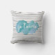 La almohada acuática gráfica Je T'aime presenta rayas blancas y negras de moda y un efecto acuarela azul y verde azulado.