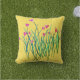 Almohada al aire libre amarilla con las flores del