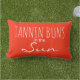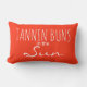 La almohada al aire libre anaranjada quemada refrán divertido hace que una gran decoración del patio junta las piezas y añade un cierto humor al verano. Ambos lados de la almohada del acento son naranja brillante y la parte delantera tiene frase divertida "bollos del tanino en el sol" en la tipografía blanca. Color del personalizar y palabras de usted deseo.
