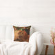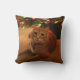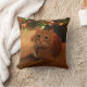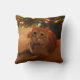Esta almohada tiene un tabby anaranjado lindo delante de un árbol de navidad adornado.