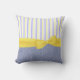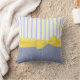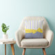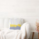 Almohada de tiro preciosa con los gráficos del dril de algodón azul, en la parte posterior y el frente inferior, de la almohada, y una raya del amarillo, del azul, y blanca, en la parte delantera superior. Gráficos dulces de una cinta amarilla soleada grande y de los estiramientos del arco a través del frente medio. Personalizar para añadir el texto a esta almohada preciosa. Grande como idea del regalo y agradable en cualquier sitio de la casa.