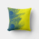 Almohada azul y amarilla de la pluma del pavo real