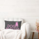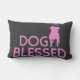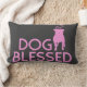 El " perro bendijo" la almohada del acento del ángel del pitbull, ilustraciones rosadas mostradas en una almohada gris profunda. ¡Estudio del diseño de DoggyStyle, celebrando al mejor amigo del ser humano! estudio 2015 del diseño de DoggyStyle del ©