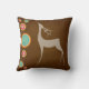 ¡Una almohada de tiro magnífica del día de fiesta ofrece un fondo marrón con las bolas del estilo del vintage del trullo, las rosas fuertes, naranja, y chartreuse con los copos de nieve y las estrellas y un ciervo blanco en frente, diversos copos de nieve brillantemente encendido coloreados de la silueta detrás!