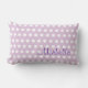 Una almohada purpúrea clara, de la lila o del lavanda y blanca moderna y elegante de lunar del modelo del tiro y lumbar con el nombre opcional, iniciales del monogramor. Personalice su regalo añadiendo sus propias iniciales, nombre o texto. Esta diversión, diseño femenino, de moda aumentará cualquier sitio casero del dormitorio de la decoración, de la sala de estar, del sofá, del dormitorio, de la oficina, del barco, de la universidad o de la universidad, adolescentes, chicas, muchachos y embroma cuartos. Elija su tamaño de la almohada o del amortiguador. Elija su propia fuente y colores para hacerle sus los propios.