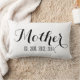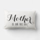 Decoración casera elegante. Almohada de encargo blanco y negro del regalo del recuerdo del día de madre que usted puede personalizar con las fechas de nacimiento de sus niños. © de Elke Clarke disponible en www.zazzle.com/monogramgallery. Reversible con la escritura blanca en un lado y el negro en el otro. La palabra "madre" y fechas sus niños nació. Un regalo elegante, elegante para su mamá, mamá, madre.