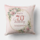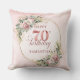 Celebre 70 años con estilo con esta almohada dorada rosa brillante. Con flores de acuarela rosadas polvorientas, rosadas y rosadas claras, exuberante verdor, acentos de eucalipto y un marco dorado, este diseño boho, floral y bohemio es un regalo perfecto para una almohada de cumpleaños número 70.