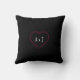 Almohada personalizable de lanzamiento de la foto del día de San Valentín con un ramo de rosas rojas. La almohada cuadrada con marco de foto de rosa en forma de corazón tiene un fondo negro en la parte delantera y trasera, con tus iniciales en la parte posterior de la almohada. La foto se puede recortar y colocar para que se ajuste a la forma del corazón. Es posible que las capas deban desactivarse temporalmente para mover la foto.