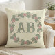 Almohada con monograma de corona de rosa verde ros