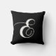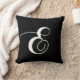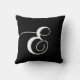 Almohada blanca negra del monograma E. Esta fuente elegante del remolino transforma su inicial del monograma en una almohada con monograma elegante del diseñador. Grande para su dormitorio, silla preferida, como la decoración de la diversión en su sala de estar o adición decorativa formal a su sala de estar. Personalizar con su color de fondo. Para otras letras del alfabeto entre en contacto con por favor MONOGRAMGALLERY. Elke Clarke©