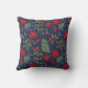 Elegante almohada con ilustración botánica de otoño. Brillante patrón de arce, acebo, muérdago y enebro sobre fondo azul oscuro.