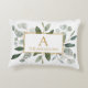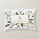 Presentamos nuestra almohada de acento de hojas verdes tropicales de acuarela con monograma. Con ilustración de acuarela de un arreglo de bouquet de vegetación con monograma personalizable en el medio en color dorado. Adecuada como regalo de inauguración o boda para amantes de la naturaleza