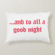 Letras rojas de bonito con baya diciendo "...y a todos una buena noche" en esta almohada nevada de tiro blanco con una espalda sólida de color rojo. También tenemos este diseño en rojo Christmasy sólido con letras blancas de nieve, así como versiones en verde y blanco. Las palabras pueden cambiarse por las suyas si lo prefieres. Esta está acondicionada en algodón lavable, pero hay otras opciones de tela a precios diferentes.