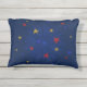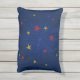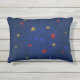 Almohada de acento exterior con estrellas doradas, rojas y azules. Con el aspecto de estrellas brillantes, esta explosión de estrellas azules con estrellas brillantes es la almohada exterior perfecta para la decoración de la fiesta del 4 de julio en el patio. ¡Puedes cambiar el color de fondo si lo deseas, pruébalo! Arte de Cherie's Art (c)2016 en Zazzle