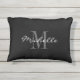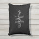 Pequeña almohada de acento exterior con monograma en blanco y negro. Diseño de monograma elegante con tipografía de letra cursiva estilosa y letras iniciales de nombre. Idea de regalo lindo para hombres, mujeres y niños. Cojín decorativo para sofá exterior, sofá o cama. Accesorios de jardín personalizados para patio trasero, patio o terraza. Diseño glamuroso con nombre personalizado. También es bonito para novia y novio en fiesta de boda elegante al aire libre.