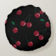 Almohada de acento redondeo negro de cerezas rojas