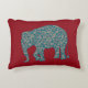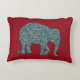 Una almohada de acento fresco o un colchón al personalizar, con una silueta de elefante, llena de un patrón azul oscuro y paisley borgoña sobre un fondo rojo profundo que se puede cambiar si se desea. Este diseño, que forma parte de la colección "Heffalumps" de Posh & Painterly, se puede ajustar para adaptarlo a cualquier almohada o cuchara.