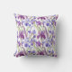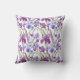 Elegante patrón floral de iris púrpura al agua que presenta vibrantes flores violetas, lavanda y magenta con hojas verdes frescas. Este diseño botánico artístico añade un toque romántico suave a cualquier sala de estar, dormitorio o espacio acogedor. Perfecto como almohada decorativa para decoración de primavera, interiores femeninos, hogares inspirados en el jardín o para cualquiera que ame piezas de declaración floral audaces.