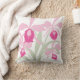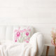 Una audaz almohada floral en tonos rosa y verde sobre un fondo blanco. Se vería estupendo en una habitación de verano. Impresión gráfica original de una orquídea simpodial Cattleya estilizada por Sarah Trett. www.sarahtrett.com