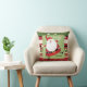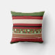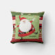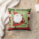 Un Santa peculiar hace juegos malabares campanas de trineo en esta almohada de la diversión para la estación del navidad. La almohada es principalmente una mezcla de los paneles anchos de la crema, del rojo, negros y verdes, y el cada panel se compone de un diseño, de lunares o de rayas. El Santa de mirada moderno con su bigote rizado ancho y piernas minúsculas defiende hacia fuera del fondo ocupado la colocación en un cuadrado verde llano.