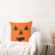 Esta almohada festiva de lanzamiento de Halloween se muestra en una cara de calabaza negra y naranja. Personalizar esta almohada o compra como está.