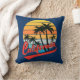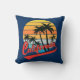 Almohada de California con un diseño retro que presenta una puesta de sol y palmeras en Old Glory Blue y Red en el reverso. Este diseño de almohada también tiene California en una fuente manuscrita con un glifo de cola de floritura para ese look retro con estilo. Este diseño es solo para ti si eres de California o puedes conseguirlo como regalo o recuerdo para alguien.