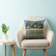 una almohada de tiro con una imagen del campo en el frente y un barco el pontón en la parte posterior.