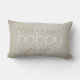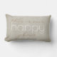 Esta almohada de citas tiene un mensaje de texto: este es nuestro lugar feliz con un fondo de color gris de angustia para una decoración de casa chic y chic.