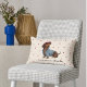 Almohada de perro personalizada encantadora con un dachshund con estilo que lleva una chaqueta de mezclilla y gafas de sol en forma de corazón, colocada sobre un fondo suave con pequeños corazones.