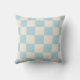 Una almohada de cuadros azul claro y crema con un estilo geométrico limpio. Perfecta para decoración moderna.