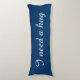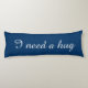 almohada personalizada del cuerpo del texto | Necesito un abrazo. Colores azul marino y blanco. Tipografía de escritura elegante.
