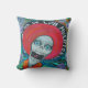 Este día de la pintura muerta se acoda en colores, con tonalidades de púrpura, de amarillo, de rosado, de azul, de verde, de marrón y el rojo para celebrar este día de fiesta mexicano. Folkart pintado a mano con rosas y una guitarra, creada en 2012. Almohada de Dia De Los Muertos american MoJo