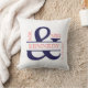 Almohada de encargo personalizada del boda o del aniversario del recuerdo del monograma en azules marinos y texto o tipografía del coral en un fondo blanco en el frente y el fondo de los azules marinos en la parte posterior para las almohadas y los amortiguadores cuadrados de tiro. El personalizar con el apellido de novia y del novio y el boda fechan. Este elegante y moda, diseño moderno, de moda, contemporáneo aumentarán cualquier decoración, sala de estar, sofá, salón, dormitorio, oficina, o barco casera. Esta almohada o amortiguador es bodas perfectos de un regalo, aniversarios, novia a ser, pares, compromisos o para sí mismo o alguien usted ama. Simple y elegante.
