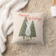 Haz que tu hogar sea más festivo con esta linda y elegante almohada de Felices Fiestas de Navidad Gnomos del Bosque. Escena de bosque invernal que presenta un gnomo escandinavo de piernas delgadas sosteniendo un lindo pájaro azul frente a pinos. En tipografía roja bonita está la cita "Felices Fiestas". Fondo beige.