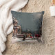Almohada que muestra una escena de luna llena nevada mientras los invitados llegan a caballo y en trineo para una fiesta de Navidad en la mansión Victoriana brillantemente iluminada.