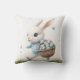 Agregue un toque de magia primaveral a una guardería o sala de juegos con esta encantadora almohada. La parte delantera presenta una ilustración de estilo pintado a mano de un conejo blanco esponjoso con un suéter a cuadros azul que lleva una canasta de huevos coloridos. La parte posterior muestra un sentimiento limpio de "Feliz Pascua", lo que la convierte en un acento reversible perfecto para la decoración estacional del hogar.