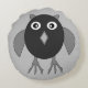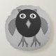 Esta impresionante almohada redonda presenta una lechuza espeluznante con ojos enormes y garras retorcidas. Su cuerpo es negro y sus alas, orejas, garras y pico son grises. Este búho espeluznante puede esconderse nunca visto bajo la cubierta de la oscuridad y es el material de las pesadillas.