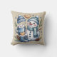 Almohada de adorable muñeco de nieve bebiendo chocolate caliente de invierno