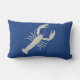Esto es una almohada bilateral. Un lado es un fondo medio de los azules marinos con una langosta beige, el otro lado es el revés, un fondo beige con una langosta media de la marina de guerra en él. Usted puede cambiar los colores y la fuente para adaptarse a su decoración.