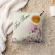 Un retrato encantador de una taza de té tentadora junto a un paquete de pequeñas flores violetas y blancas sobre un sutil fondo violeta y blanco con la leyenda "Hora del té". Perfecto para un acogedor salón de té.